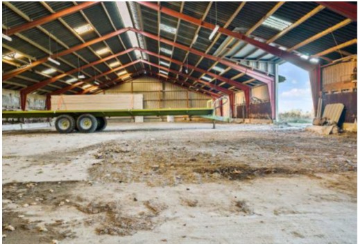 44 m2 isoleret værksted og 182 m2 kold hal med støbt gulv og god loftshøjde. Port: 3,20 m bred og 3,00 m høj.